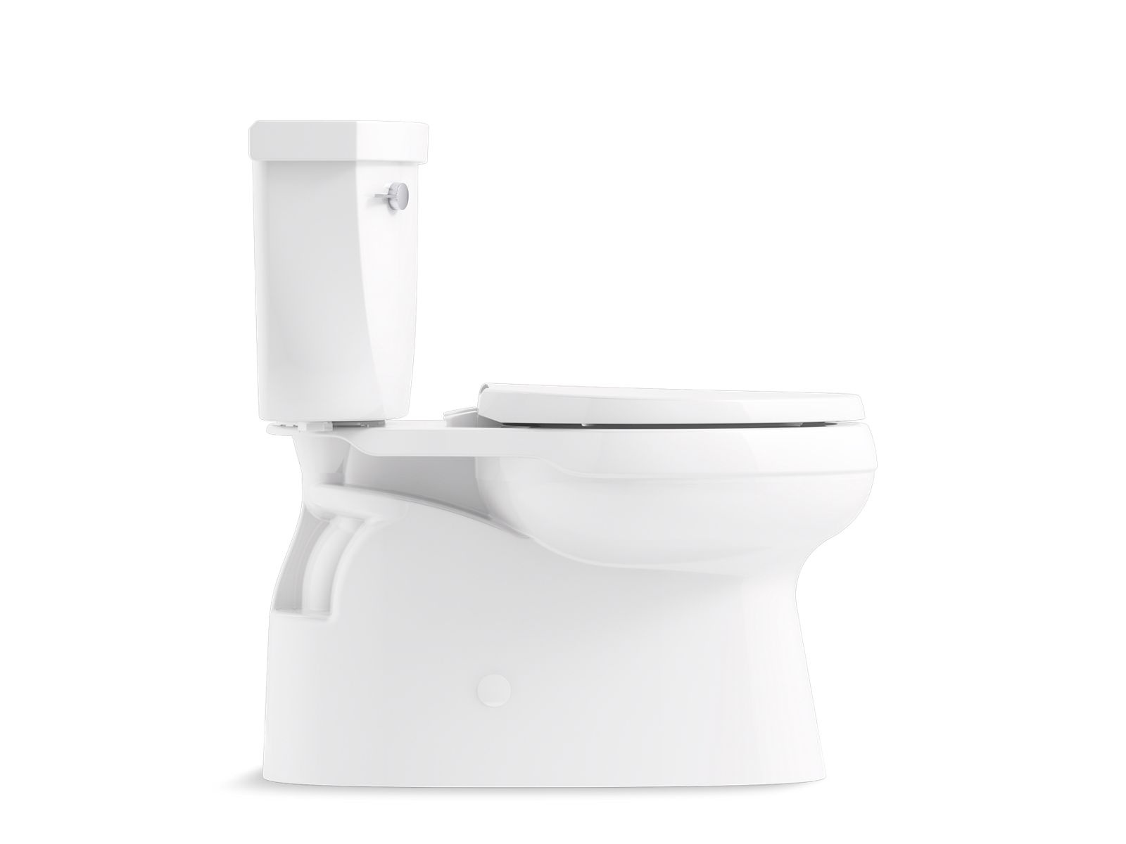 This WaterSense®-labeled high-efficiency toilet delivers water conservation and easy installation in a sleek, skirted design. The KOHLER® Cimarron two-piece skirted toilet utilizes Kohler's patented new ReadyLock® installation system for easier, more intuitive installation. The skirted trapway installs to the floor flange and attaches to the two-piece elongated toilet, eliminating the need to drill holes for a standard 12" rough-in while offering the same secure installation as non-skirted toilets.