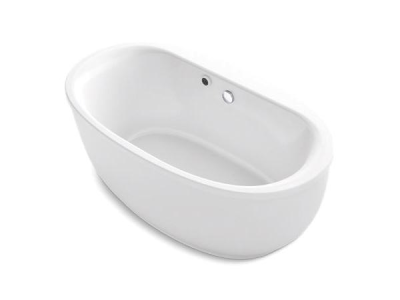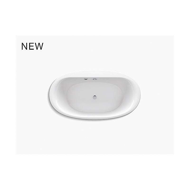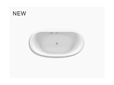 Kohler® Bathtub, Sunstruck®, Soaking Hydrotherapy Bath Therapy, Oval, 66 in Length, 36 in Width, 24-1/2 in Height, 72.6 gal Water, Center Drain Location, 1-1/2 in Drain, 45-3/4 x 24-7/8 in Bottom Basin/54-7/8 x 29-3/16 in Top Basin Bathing Well, 16 in Soaking Depth, 16 in Overflow Height, Freestanding Mount, Acrylic, White