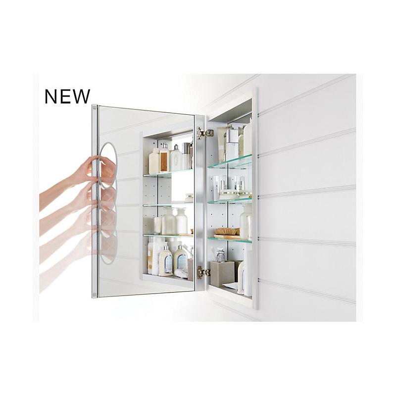 The KOHLER® Verdera 20" x 30" mirrored surface-mount/recessed rectangular medicine cabinet combines an elegant fit and finish with quick, easy installation. With an adjustable pull-out mirror, daily grooming tasks are easier than ever. A soft-close door prevents slamming.