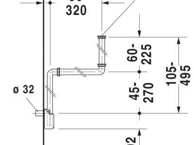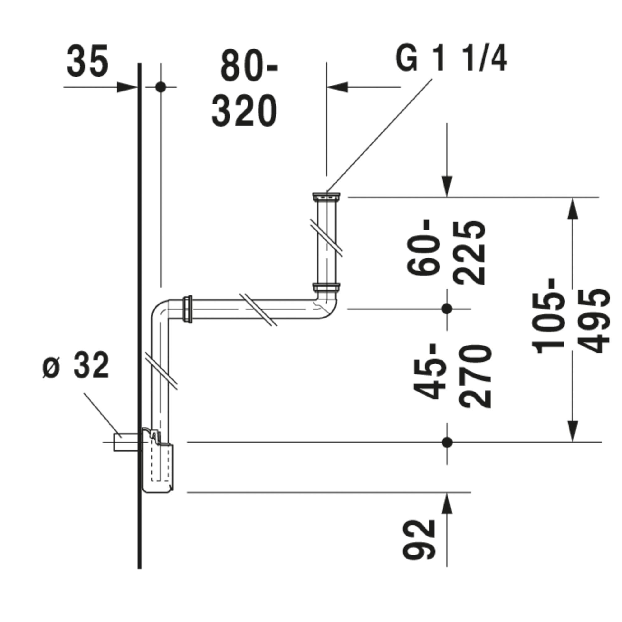 DURAVIT Space Saving Siphon, Series: 005076, For Use With: Vanity Unit, Specifications: 1-1/4 in, Plastic, White, 13 in L x 3-1/4 in W x 14 in H, Import