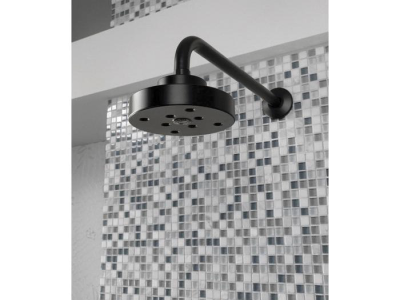 Brizo® Raincan Shower Head, Odin™, 2 gpm, 1/2-14 NPSM, Round, Number of Sprays: 1, Spray Pattern: Full Body, Wall Mount, 80 psi, 16 in Arm Length, 5-3/8 in Overall Width, 2-3/4 in Overall Height, Plastic, Matte Black, Import