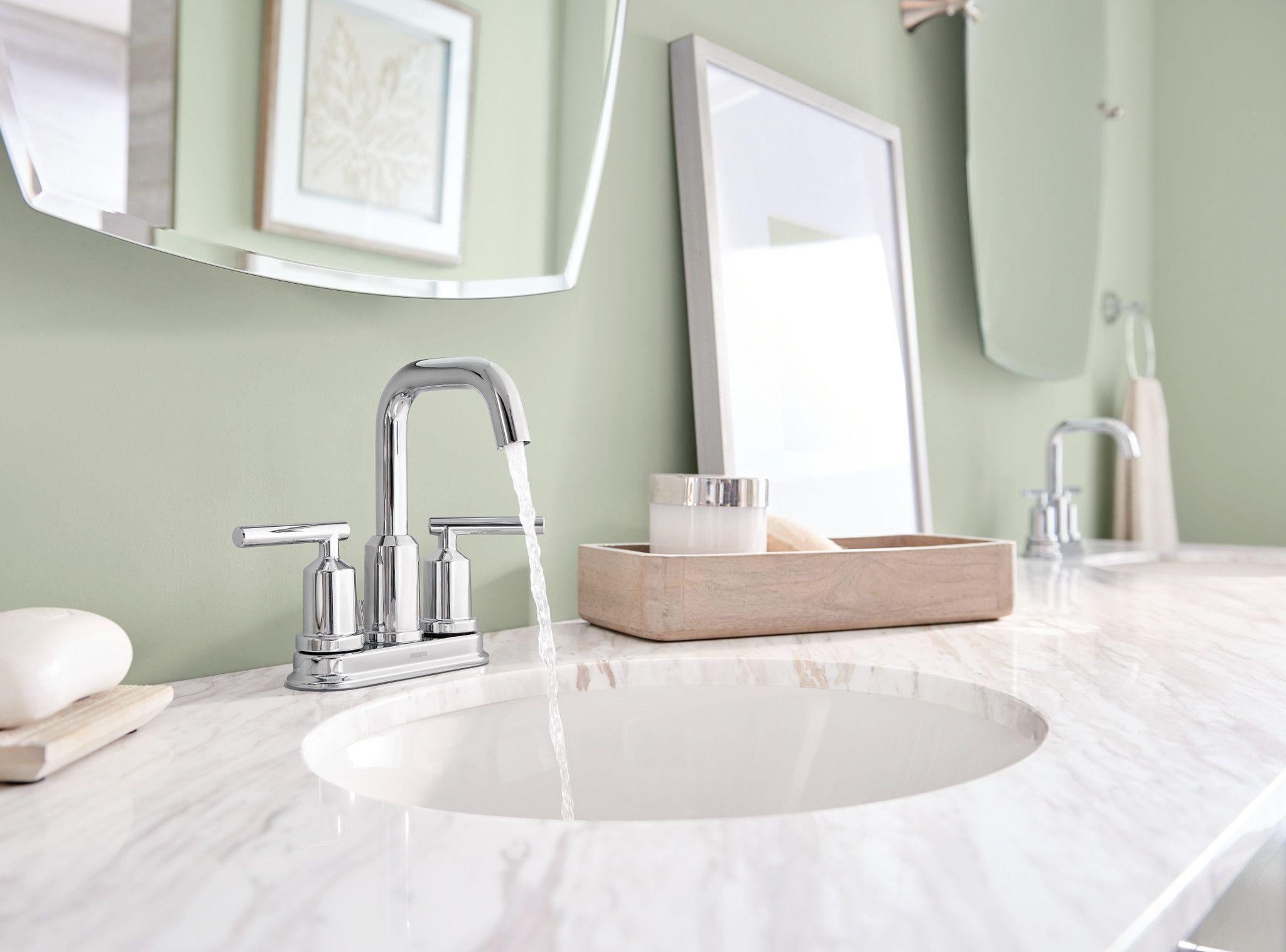 Moen® 6150 Gibson™ Centerset Bathroom Faucet, Polished Chrome, 2 Handles, Metal Pop-Up Drain, 1.2 gpm Flow Rate