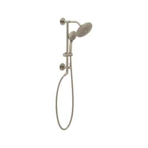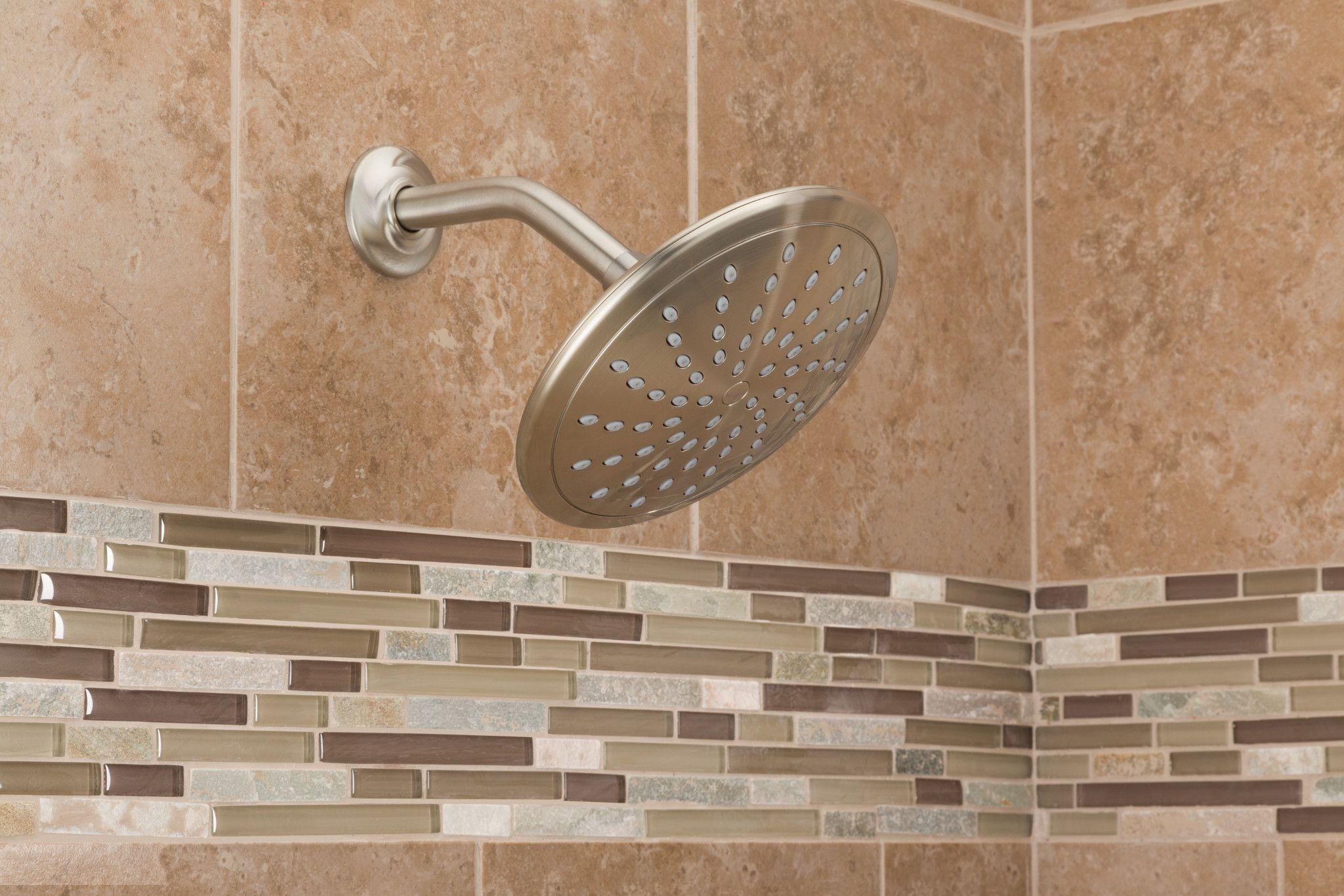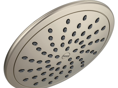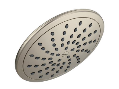 Moen®, 6345BN, Shower Head, Series: 6345, 2 gpm Flow Rate, 1/2 in IPS Connection, Round Shape, 1 Sprays, Spray Pattern: Rain/Full, Wall Mounting, 80 psi Pressure, 8 in Head, 8 in Overall Width, 8 in Overall Height, Metal, Brushed Nickel, Domestic