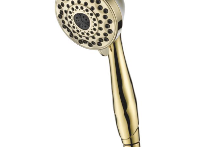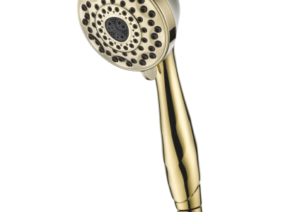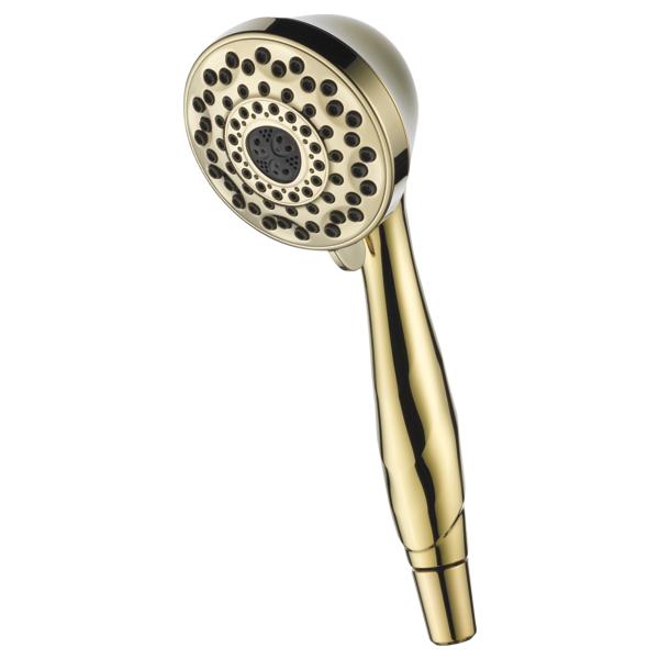 DELTA® 59426-PB-PK Premium Hand Shower, 3-13/16 in Dia 7 Shower Head, 2 gpm Flow Rate, 1/2 in IPS Connection, Polished Brass, Import