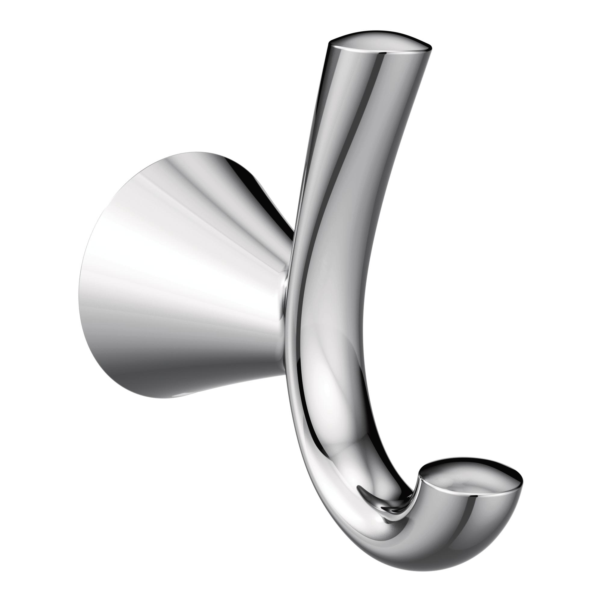 Moen®, YB2303CH, Robe Hook, Glyde™ Collection, 2 Hooks, 1-3/4 in Overall Width, 3.19 in Overall Depth, 3.31 in Overall Height, Wall Mounting, Chrome, Import
