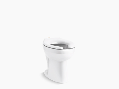 Kohler®, 96057-0, Ultra Flushometer Toilet Bowl, Series: 96057, Highcliff™ Ultra Collection, 1.6 Gallons per Flush, Elongated Shape, 10 x 7 in Water Surface, 16-7/8 in Rim Height, 10 or 12 in Rough-In, 2-1/8 in Trapway, 1-1/2 in Inlet Spud, Floor Mounting, 16-7/8 in Height, 14-5/8 in Width, 26-3/8 in Depth, Vitreous China, White