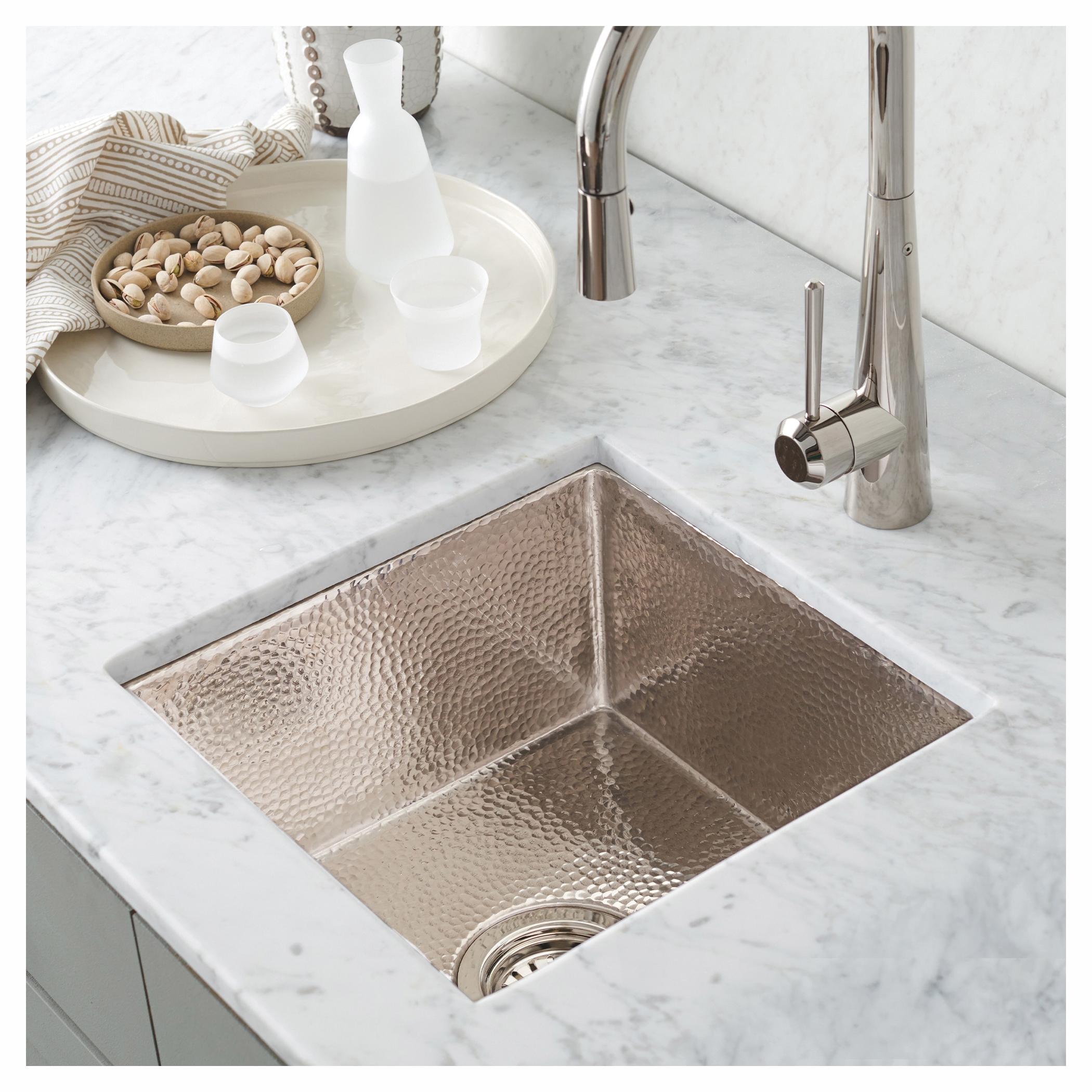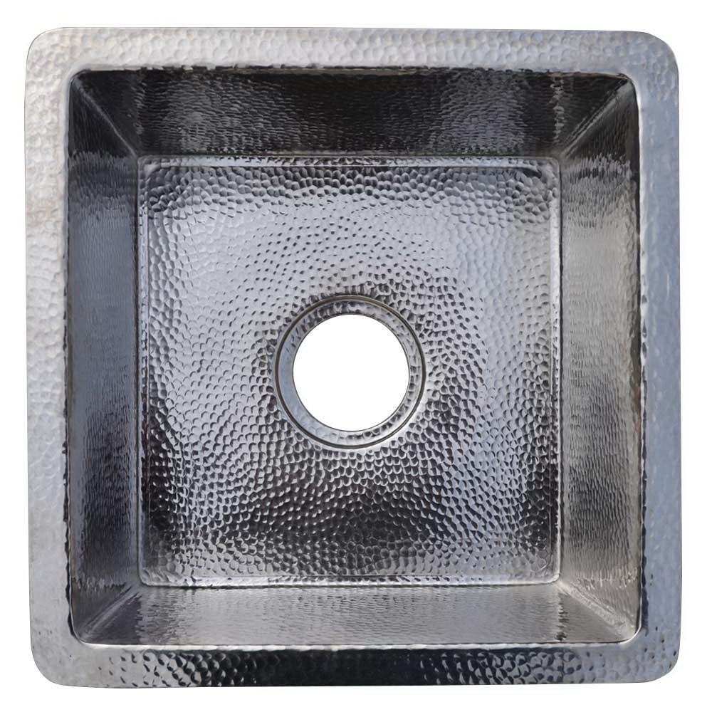 Native Trails CPS834 Cantina Bar and Prep Sink, Polished Nickel, Square Shape, 13 in L x 13 in W Bowl x 7 in D Bowl, 15 in L x 15 in W x 7-1/2 in H, Undermount Mounting, Copper