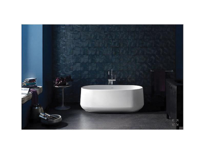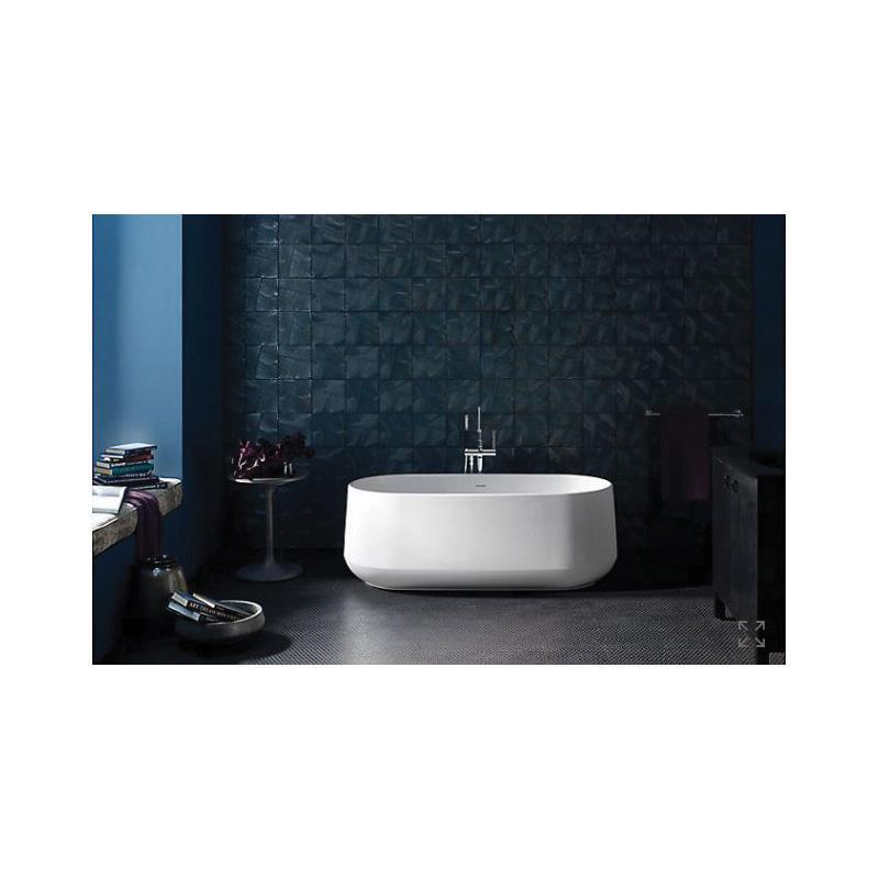 Clean, elegant, and contained, KOHLER® Ceric expresses contemporary warmth and simplicity. This Ceric 65" x 31" oval freestanding bath lets you indulge in a deep, immersive soak as you relax against the sloped lumbar support. KOHLER® Lithocast® cast resin material allows for geometries with dynamic style and crisp, hand-finished detail rich with character. KOHLER® Lithocast® Gloss cast resin is lightweight and easy to clean, with a high-gloss finish.