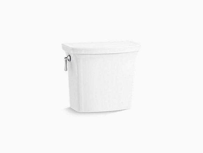 This KOHLER® Corbelle toilet tank features innovative AquaPiston® technology, a patented flush engine that delivers a fast, powerful, and virtually plug-free flush. A 1.28-gallon flush provides significant water savings of up to 16,500 gallons per year, compared to a 3.5-gallon toilet, without sacrificing performance. Pair this toilet tank with a Corbelle toilet bowl for a beautiful, sleek two-piece toilet.