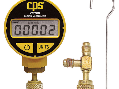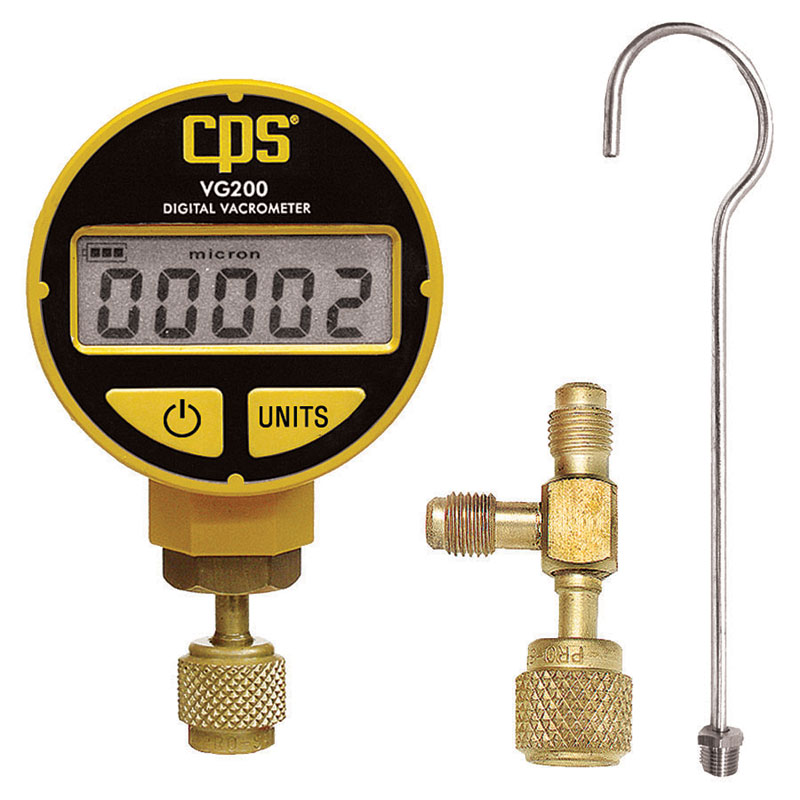 Monitors evacuation procedures from start to finish. Because of strict NIST standards and continuous calibration testing, the VG200 Digital Vacuum Gauge earned a reputation of best-in-class for its accuracy and reliability. A simple 2 button operation gives the flexibility to select or change units: MICRONS, MILLIBAR, TORR and INCHES/HG quickly during any procedure. It will also automatically compensate for varying temperature conditions, with no manual adjustments necessary.