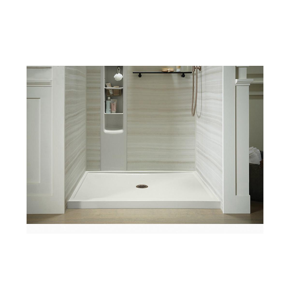 Kohler® 8461-0 Rely® 1-Piece Single Threshold Shower Base, White, Center Drain, 48 in L x 34 in W x 4-3/16 in D