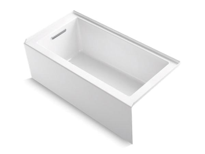 Kohler® Bathtub, Underscore®, Soaking Hydrotherapy Bath Therapy, Rectangular, 60 in Length, 30 in Width, 20-1/4 in Height, 68 gal Water, Left Drain Location, 1-1/2 in Drain, 46-1/4 x 22 in Bottom Basin/52 x 24 in Top Basin Bathing Well, 15-1/2 in Overflow Height, 3-Wall Alcove Mount, Acrylic, White