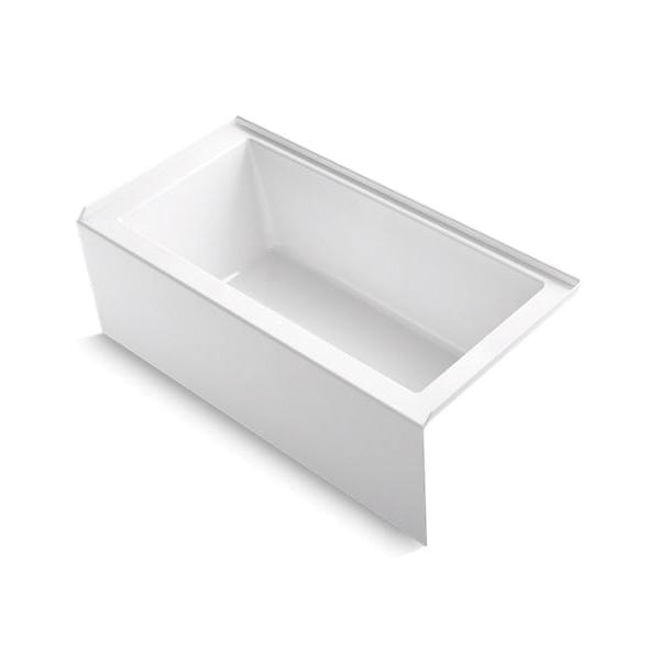Kohler® Bathtub, Underscore®, Soaking Hydrotherapy Bath Therapy, Rectangular, 60 in Length, 30 in Width, 20-1/4 in Height, 68 gal Water, Right Drain Location, 1-1/2 in Drain, 46-1/4 x 22 in Bottom Basin/52 x 24 in Top Basin Bathing Well, 15-1/2 in Overflow Height, 3-Wall Alcove Mount, Acrylic, White