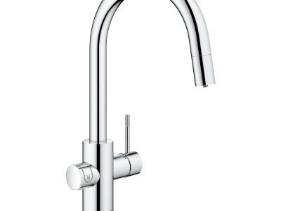 Smart and satisfying, the GROHE Blue Chilled and Sparkling 2.0 Faucet allows you to enjoy instant access to filtered chilled water, medium carbonated or full sparkling water, and unfiltered tap water in one technologically advanced design. Pushbutton with LED ring dispenses your preferred water while lever handle dispenses tap water. Sleek and modern, the GROHE Blue Chilled and Sparkling 2.0 Faucet is equipped with Wi-Fi and Bluetooth to monitor faucet performance, track and notify you of CO2 usage and filter status, and control water portioning via app. GROHE Blue Filter, CO2 tank and cleaning cartridge sold separately.