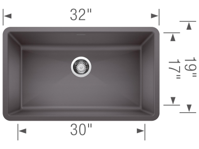 Blanco 441478 PRECIS™ SILGRANIT® II Super Single Bowl Composite Sink, Cinder, Rectangle Shape, 30 in L x 17 in W x 9-1/2 in D Bowl, 32 in L x 19 in W, Under Mount, Granite