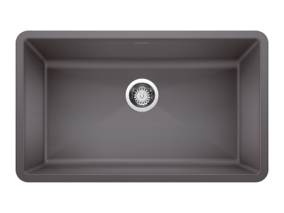 Blanco Composite Sink, Super Single Bowl, PRECIS™ SILGRANIT® II Collection, Rectangle Shape, 30 in Bowl Length, 17 in Bowl Width, 9-1/2 in Bowl Depth, 3-1/2 in Drain Opening, 1 Bowls, 32 in L x 19 in W Overall, Under Mounting, Granite, Cinder