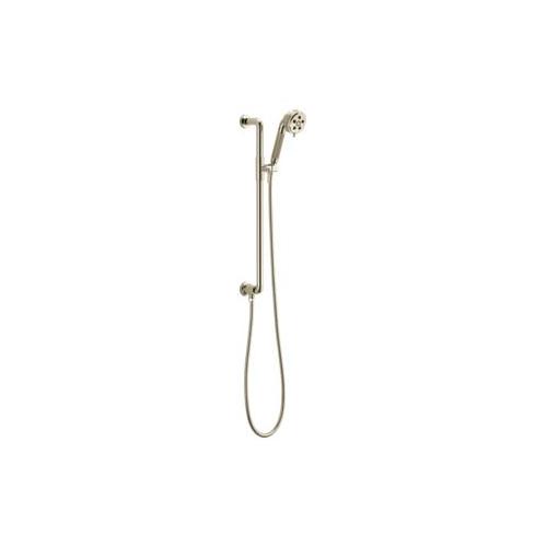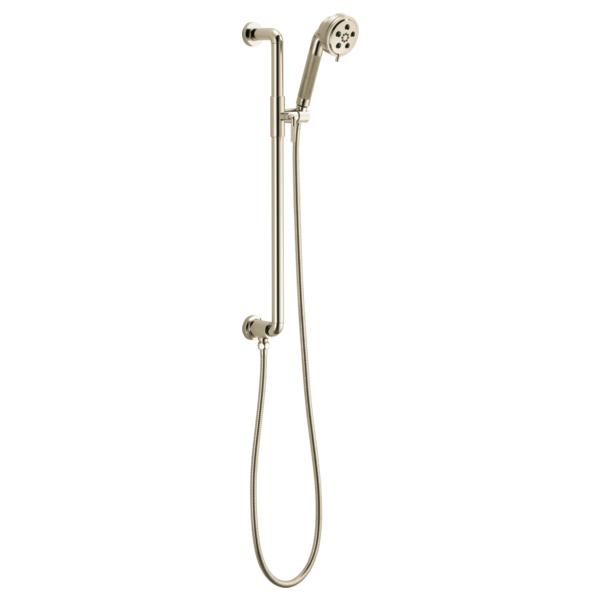 Brizo® Hand Shower, Litze™ Collection, 3-1/5 in Shower Head Diameter, 3-Function Shower Head Patterns, 2 gpm Flow Rate, 60 to 82 in Hose Length, H2Okinetic®/Massage/Pause Spray, 1/2-14 NPSM Connection, Metal Hose, Polished Nickel, 8-15/16 in H Dimensions, With Slide Bar: Yes, Import