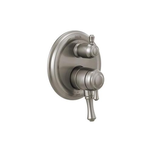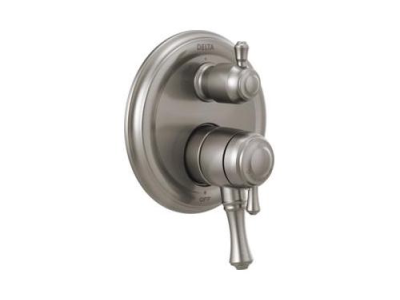 DELTA® Valve Trim, 3-Setting Traditional, Series: Monitor® 17, Cassidy™ Collection, Integrated Diverter Spout, Lever Handle, 7 in Dia Trim, 1222 Pressure Balanced, For Use With: MultiChoice® R22000 Series Universal Rough-In Valve Body, Stainless Steel