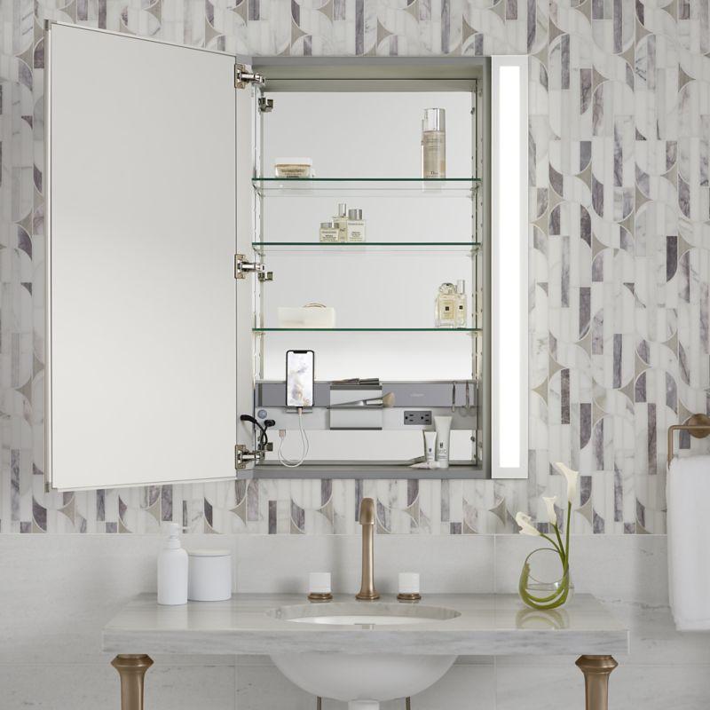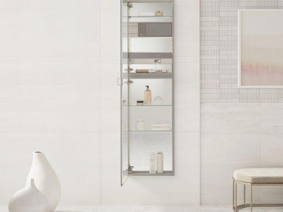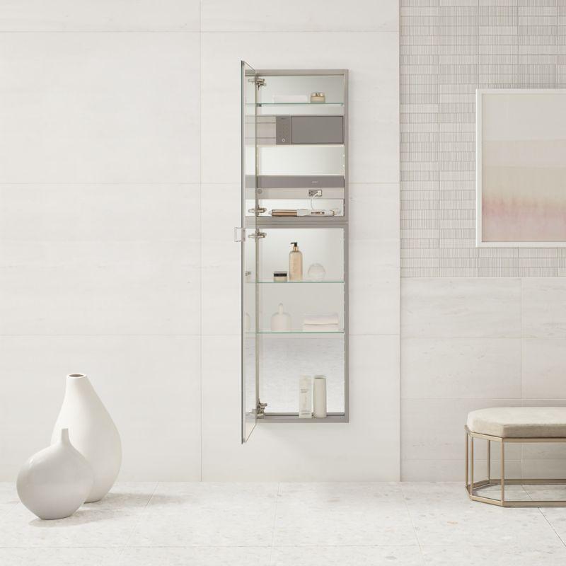 Robern®, MC2040D4FPLE4, Cabinet, Single Door, M Series Collection, 20 in Overall Width, 40 in Overall Height, Aluminum, Satin Anodized, 4 Shelves