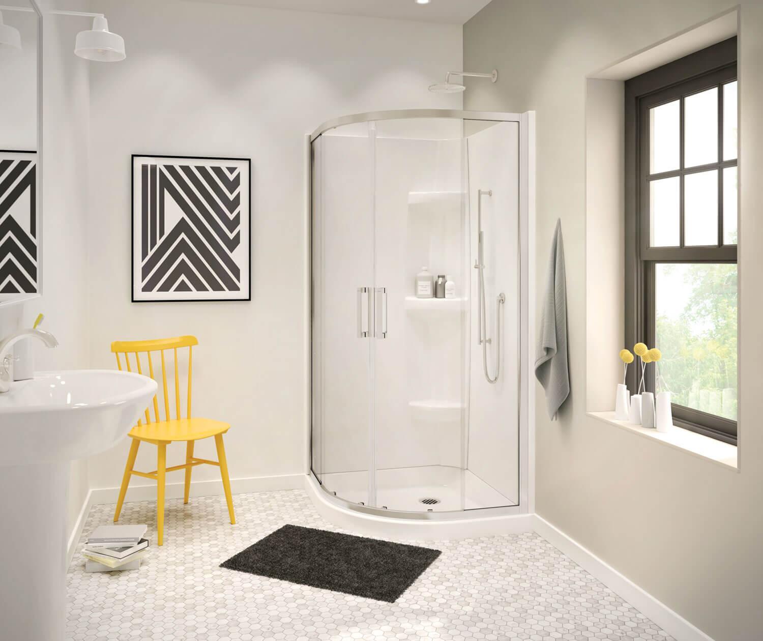 The Radia is complete line of sliding corner shower doors, available in many shapes, sizes and finishes - you are sure to find the one that will fit your your shower space. The panels are pre-assembled with the hardware and side jambs - saving you precious installation time. For those not so perfect walls, our out of plumb feature will help you get the perfect fit. The Lotus glass protection as well as the push and clip system, which allows the bottom wheels to detach from the track, are sure to make it easier for you to clean.