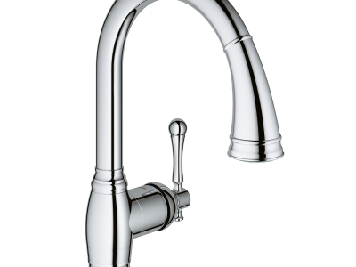The Bridgeford Single-Handle Pull-Down Kitchen Faucet from GROHE is a classic design featuring soft curves and intricate details. Convenient pull-down spray easily toggles between regular water flow and spray for maximum versatility for every kitchen task. Meticulously crafted with a high, swivel spout for ease when filling pots, and lever handle that offers precise control of water pressure and temperature. Available in durable GROHE StarLight(R) finishes for lasting beauty.