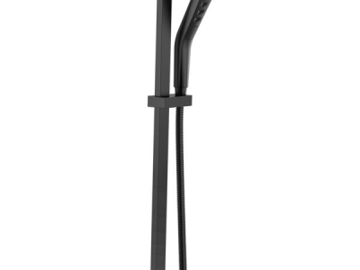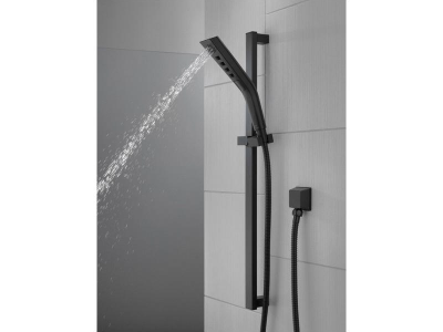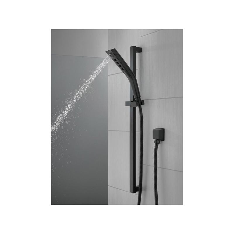 DELTA® Hand Shower, 3-Function Shower Head Patterns, 1.75 gpm Flow Rate, 60 to 82 in Hose Length, H2Okinetic®/Massage/Pause Spray, 80 psi Pressure, 1/2-14 NPSM Connection, Metal Hose, Matte Black, 10-1/2 in H Dimensions, With Slide Bar: Yes, Import