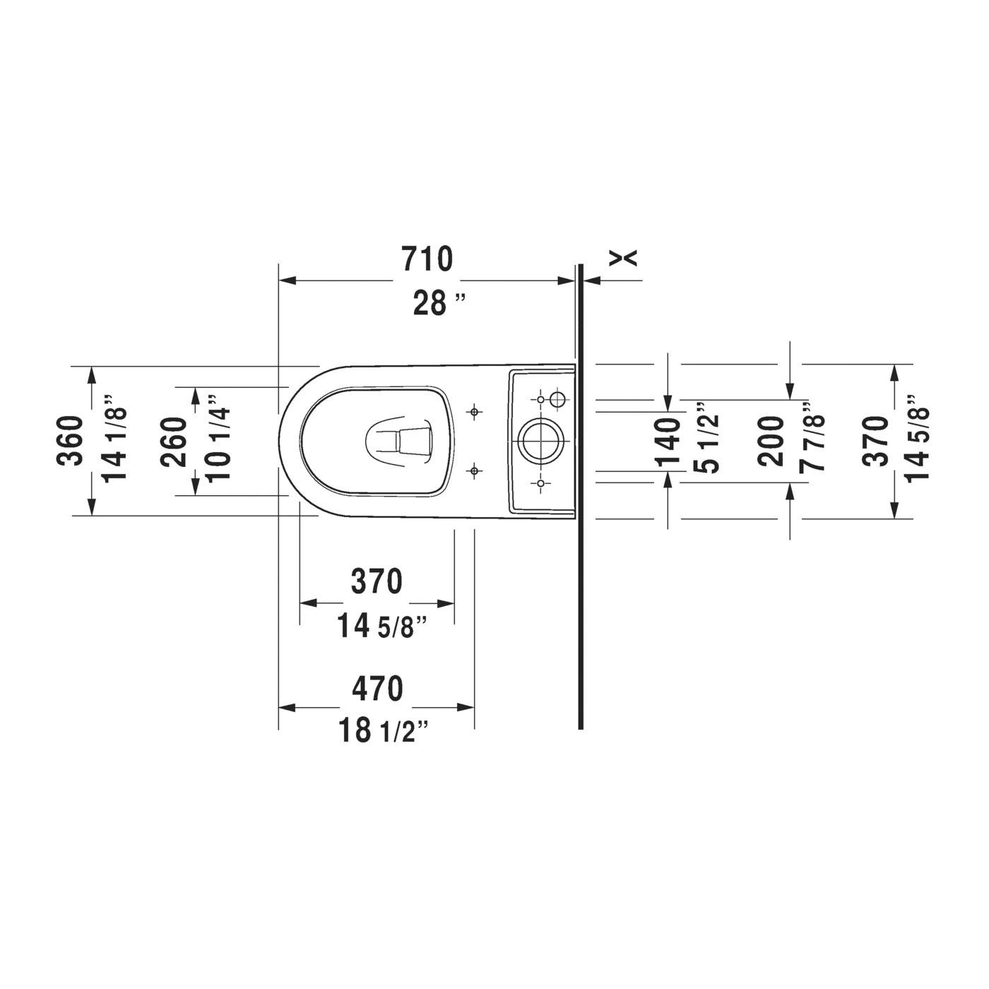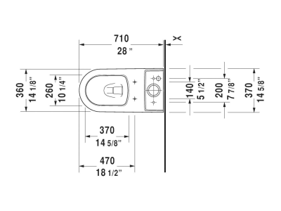 DURAVIT Toilet Bowl, Dual Flush, Series: 217101, ME by Starck, 1.32/0.92 gpf Gallons per Flush, Elongated, 16-1/2 in Rim Height, 12 in Rough-In, Floor Mount, 16-1/2 in Height, 28 in Width, 14-1/8 in D, Ceramic, White, Import
