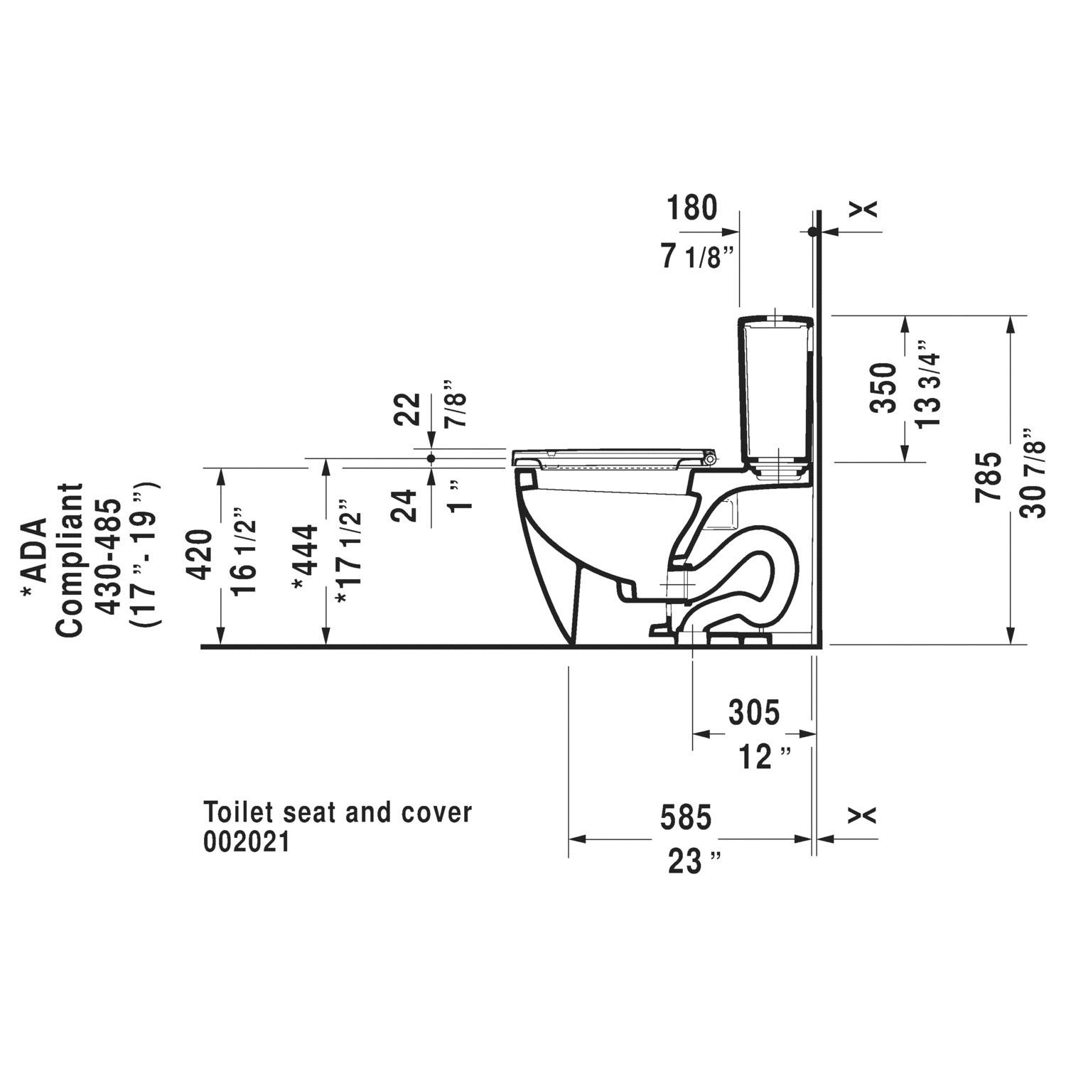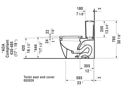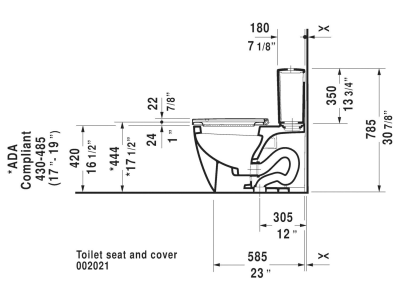 DURAVIT 2171010000 ME by Starck Dual Flush Toilet Bowl, White, Elongated Shape, 12 in Rough-In, 16-1/2 in H Rim