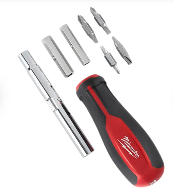 The 11 in 1 Screwdriver includes the 8 bits and 3 nut drivers most requested by professionals. The bit prevents bit wear from hardened screws and extends bit life when fastening specialty screws found in electrical boxes, conduit couplers, outlets, and other common job site fixtures.