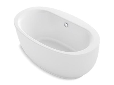 Kohler® Bathtub, Sunstruck®, 60 in Length, 34 in Width, 25-1/4 in Height, 60 gal Water, Center Drain Location, 1-1/2 in Drain, 16 in Soaking Depth, 49-9/16 x 25-1/2 in Top, 39-5/8 x 23-5/8 in Bottom Opening, Freestanding Mount, Acrylic, White