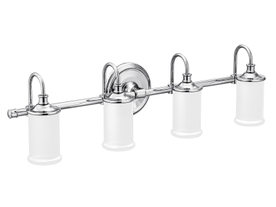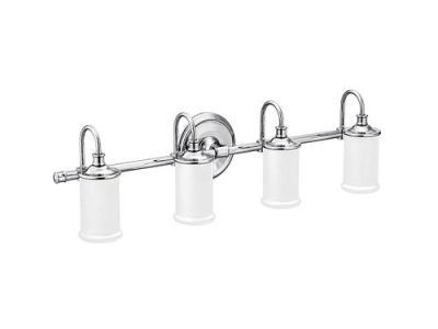 Moen®, YB6464CH, Bath Light, 110 V AC, 100 W Lamp, Medium Lamp Base, 4 Lamps, Bell Shade, Metal Housing Material, Chrome Housing Finish, 32.31 in W x 8.625 in D x 7.1 in H Dimensions