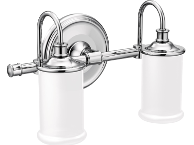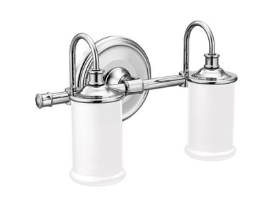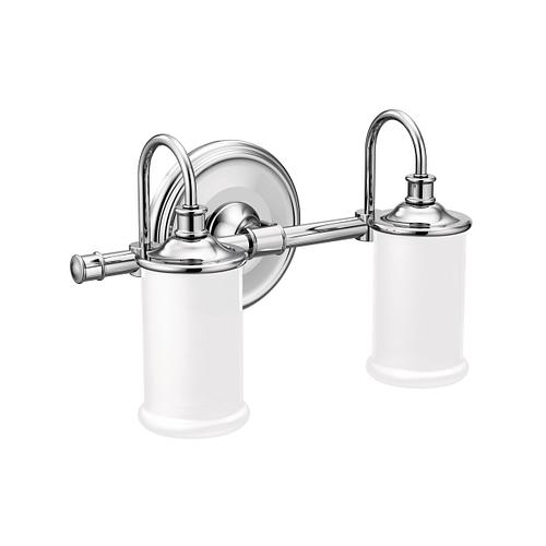 Moen®, YB6462CH, Bath Light, 110 V AC, 100 W Lamp, Medium Lamp Base, 2 Lamps, Bell Shade, Metal Housing Material, Chrome Housing Finish, 14-1/4 in W x 8-5/8 in D x 7 in H Dimensions