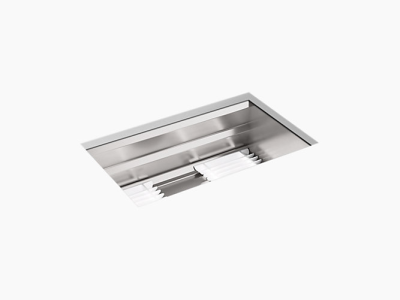 Create a highly functional kitchen workstation with the Prolific sink and its included accessories.This innovative stainless-steel sink features three graduated ledges in the basin, so you can place the bamboo cutting board, multipurpose grated racks (two), colander, and wash bin exactly where you want them for maximum efficiency as you work.The sink comes with all five accessories included. Other features include a unique cone-shaped drain for easier cleanup and SilentShield(R) sound absorption for less noise.