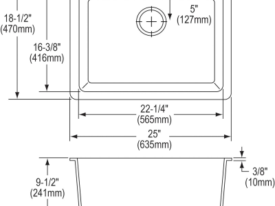 Elkay®, ELGU2522GS0, Kitchen Sink, Traditional, Quartz Classic® Collection, Rectangle Shape, 22-5/16 in Bowl Length, 16-7/16 in Bowl Width, 9-1/2 in Bowl Depth, 3-1/2 in Drain Opening, 1 Bowls, 24-5/8 in L x 18-1/2 in W x 9-1/2 in H Overall, Under Mounting, Graystone, Import
