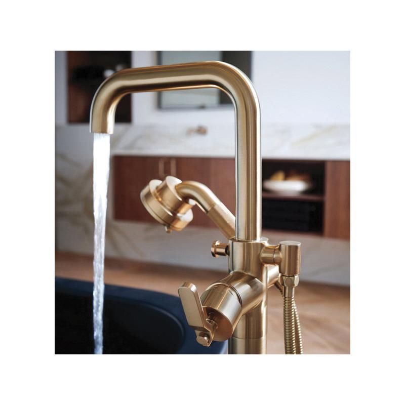 Brizo® Tub Filler, Free Standing, Litze™, 2 gpm, 9-1/4 in Spout Reach, 36-5/16 in Spout Height, 60 to 82 in Hose, 1 Faucet Holes, Hand Shower: Yes, Ceramic Disc, 39-3/4 in H, Solid Brass, Luxe Gold