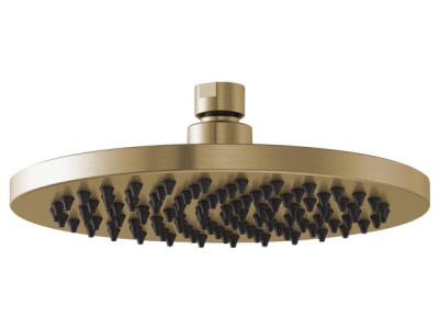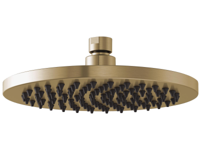 Brizo® Raincan Shower Head, Odin™, 2.5 gpm, 1/2 in, Round, Number of Sprays: 1, Spray Pattern: Full Body, Wall Mount, 80 psi, 6 in Arm Length, 7-7/8 in Overall Width, 2-5/8 in Overall Height, Brass, Luxe Gold, Import