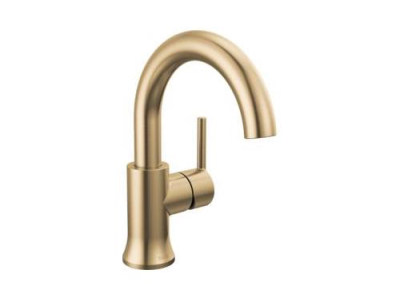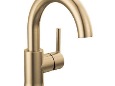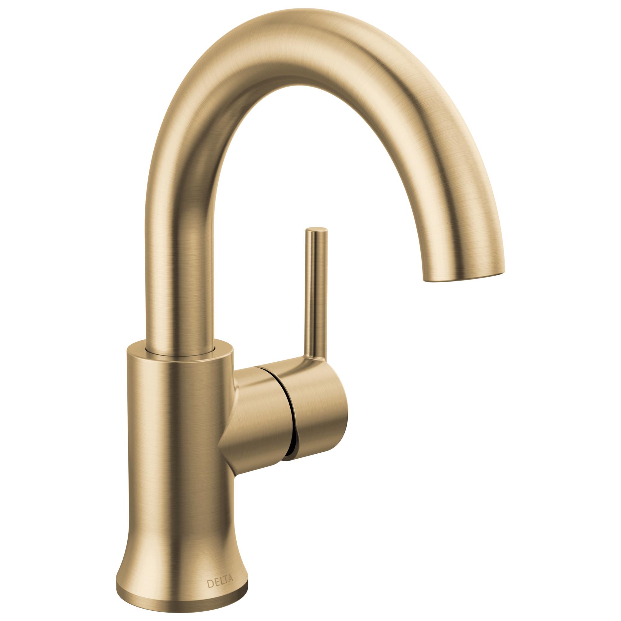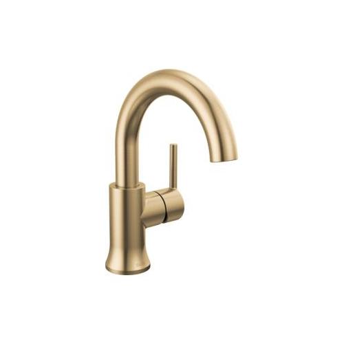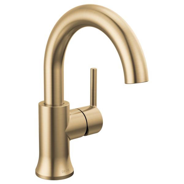DELTA® Lavatory Faucet, Trinsic® Collection, 1.2 gpm Flow Rate, High-Arc Spout, 5-9/16 in Spout Reach, 5-3/4 in Spout Height, Lever Handle, 1 Handles, Push Pop-Up Drain, 1 Faucet Holes, 3/8 in Connection, Compression Connection, Function: Traditional, 3 in Maximum Deck Thickness, Deck Mounting, DIAMOND™ Seal Valve, 8-7/8 in H Dimensions, Brass, Champagne Bronze, Commercial Commercial/Residential