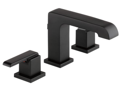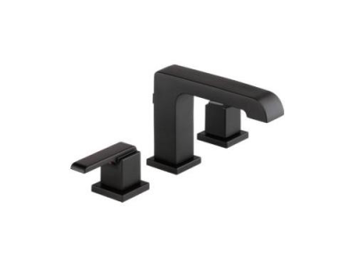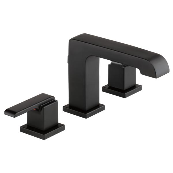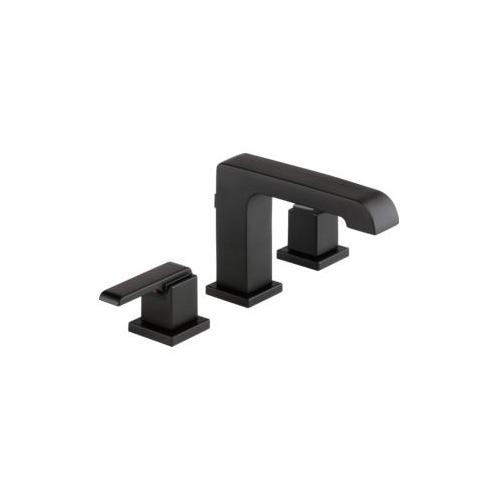 DELTA® Widespread Lavatory Faucet, Ara® Collection, 1.2 gpm Flow Rate, 4 to 16 in Center Distance, Standard Spout, 5-3/8 in Spout Reach, 5-5/16 in Spout Height, Lever Handle, 2 Handles, Metal Pop-Up Drain, 3 Faucet Holes, 3/8 in Connection, Compression Connection, 2-1/4 in Maximum Deck Thickness, Deck Mounting, DIAMOND™ Seal Valve, Brass, Matte Black, Domestic