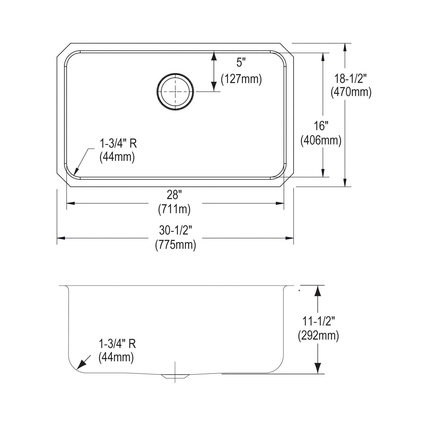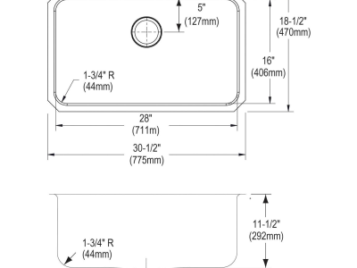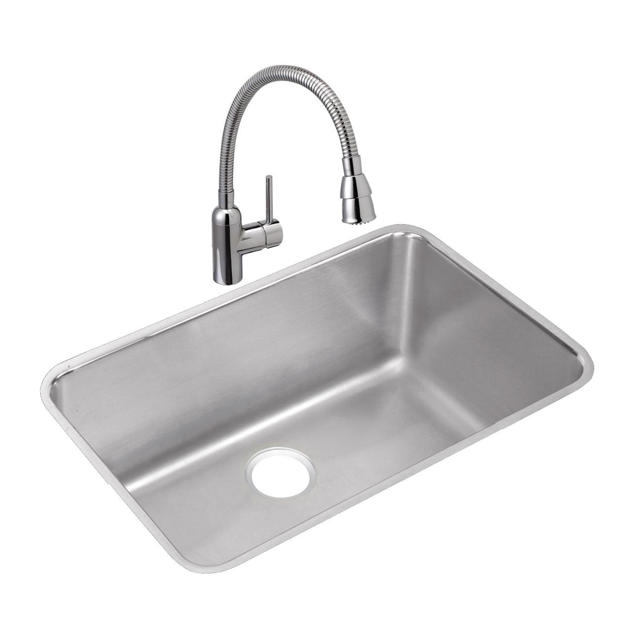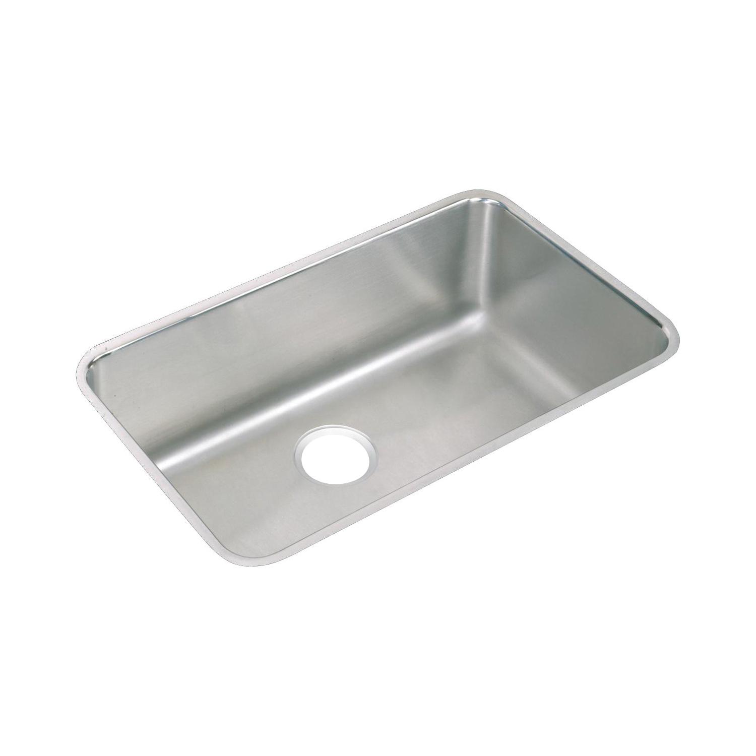 Elkay®, ELUH281612, Kitchen Sink, Lustertone™ Classic Collection, Rectangle Shape, 28 in Bowl Length, 16 in Bowl Width, 11-1/2 in Bowl Depth, 3-1/2 in Drain Opening, 1 Bowls, 30-1/2 in L x 18-1/2 in W x 11-1/2 in H Overall, Undermount Mounting, 18 ga 304 Stainless Steel, Domestic