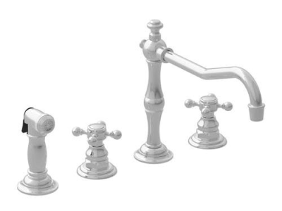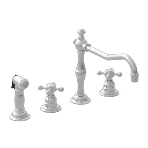 Newport Brass® Kitchen Faucet, Series: 943, Chesterfield Collection, 1.8 gpm Flow Rate, 8 to 20 in Center Distance, Swivel Spout, 9-7/16 in Spout Reach, 5-13/16 in Spout Height, Traditional Cross Handle, 2 Handles, Side Spray(Y/N): Yes, 4 Faucet Holes, 1-1/8 in Faucet Hole, 1/2 in Connection, NPS Connection, 1-7/8 in Maximum Deck Thickness, Deck Mounting, Quarter Turn Washerless Ceramic Disc Cartridge, 8-1/2 in H Dimensions, Solid Brass, Polished Chrome