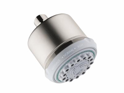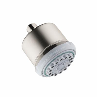 Hansgrohe 3-Jet Shower Head, Clubmaster Collection, 2.5 gpm Minimum, 1/2 in Connection, Round Shape, 3 Sprays, Spray Pattern: Full/Pulsating Massage/Soft, Wall Mounting, 3-5/8 in Dia x 4-5/8 in H Head, Brass, Brushed Nickel