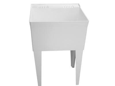 FIAT® SERV-A-SINK® FL1 Molded Stone Laundry Tub With Legs, Rectangle Shape, 23 in W x 21-1/2 in D x 33-1/2 in H, Floor Mount, Steel, White