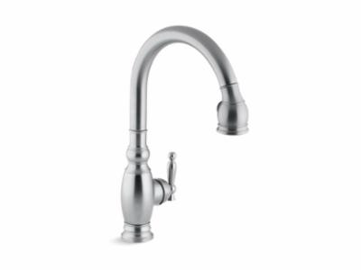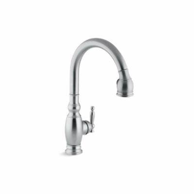 Kohler® 690-G Vinnata® Kitchen Sink Faucet, 1.8 gpm Flow Rate, Brushed Chrome, 1 Handles, 1/3 Faucet Holes, Function: Traditional