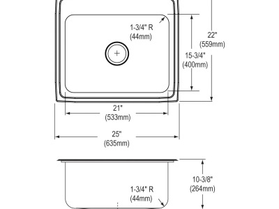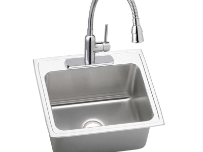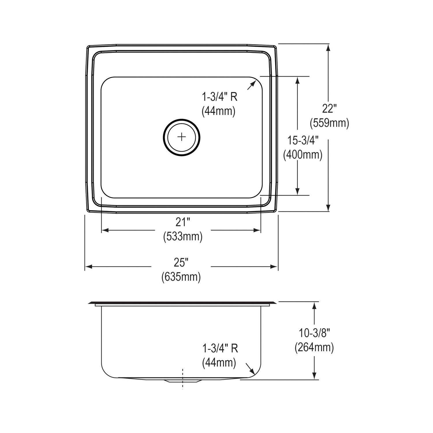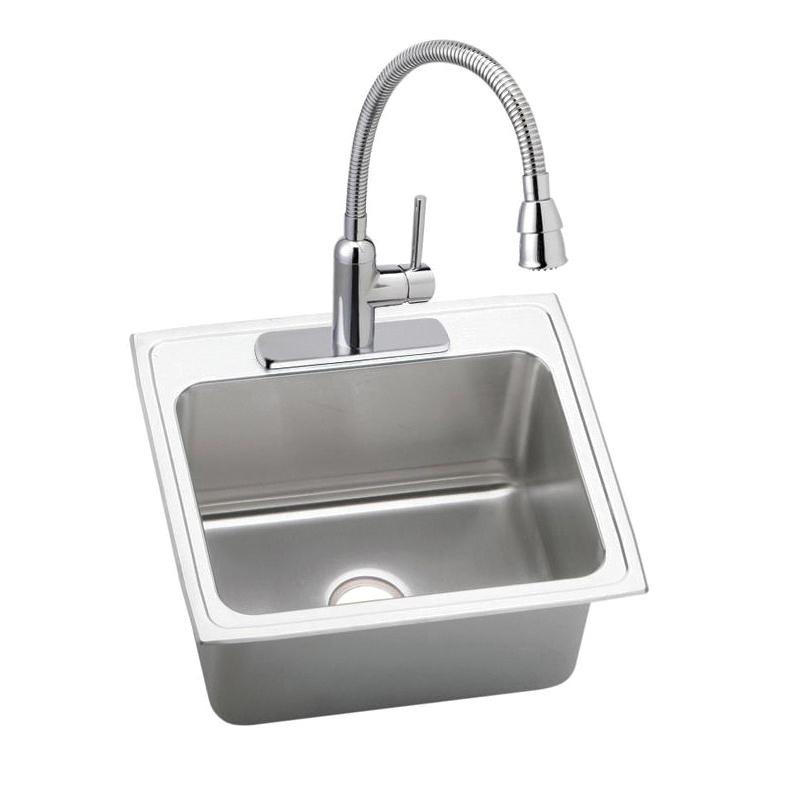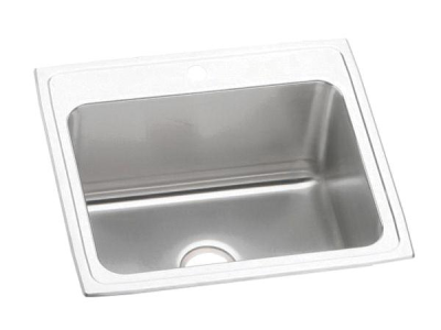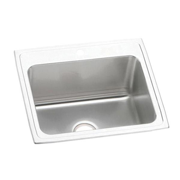 Elkay®, DLR2522101, Kitchen Sink, Lustertone™ Classic Collection, Rectangle Shape, 21 in Bowl Length, 15-3/4 in Bowl Width, 10 in Bowl Depth, 3-1/2 in Drain Opening, 1 Faucet Holes, 1 Bowls, 25 in L x 22 in W x 10-3/8 in H Overall, Drop-In Mounting, Stainless Steel, Domestic
