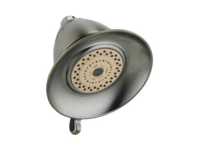 DELTA® Universal Premium Shower Head, Victorian® Collection, 2.5 gpm Minimum, 1/2 in Connection, Round Shape, 3 Sprays, Spray Pattern: Full Body/Massage/Drench, Wall Mounting, 80 psi Pressure, 5-1/2 x 4-1/4 in Head, Stainless Steel, Import