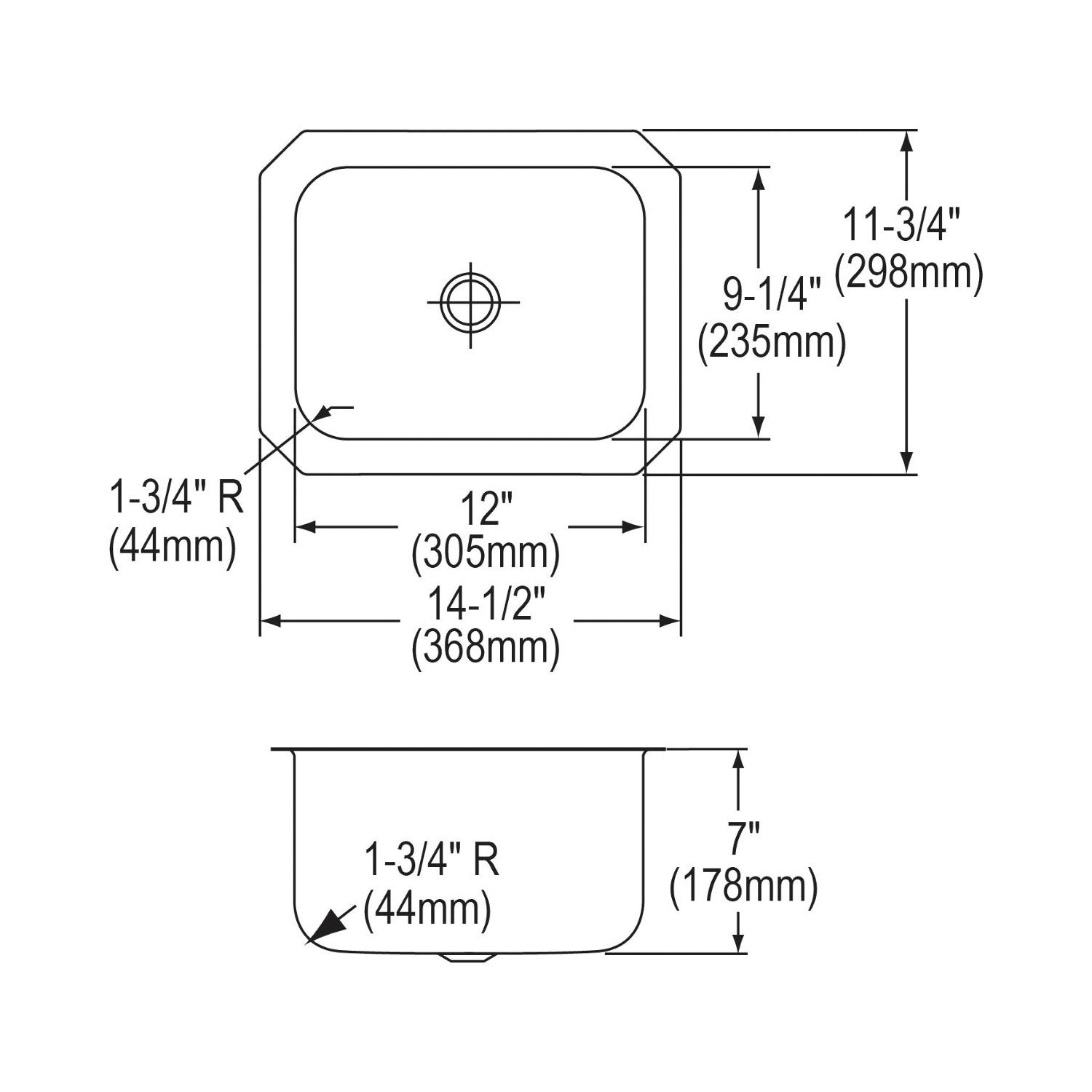 Elkay®, ELUH129, Bar Sink, Lustertone™ Classic Collection, Rectangle Shape, 12 in Bowl Length, 9-1/4 in Bowl Width, 7 in Bowl Depth, 2 in Drain Opening, 1 Bowls, 11-3/4 in L x 14-1/2 in W x 7 in H Overall, Undermount Mounting, 18 ga 304 Stainless Steel, Domestic