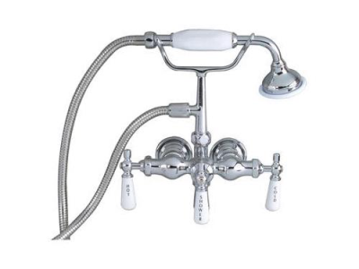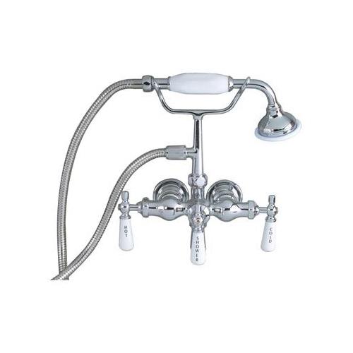 Barclay Tub Filler, Clawfoot, Series: 4025, 3.8 gpm, 3-3/8 in Center Distance, 59 in Hose, Porcelain Lever, 3 Handles, 2 Faucet Holes, Hand Shower Yes/No: Yes, 1/4 Turn Ceramic Disc Valve/Cartridge, 9 in W x 7-1/2 in D x 5-1/2 in H, Brass, Polished Chrome, Import