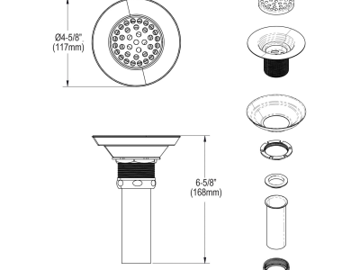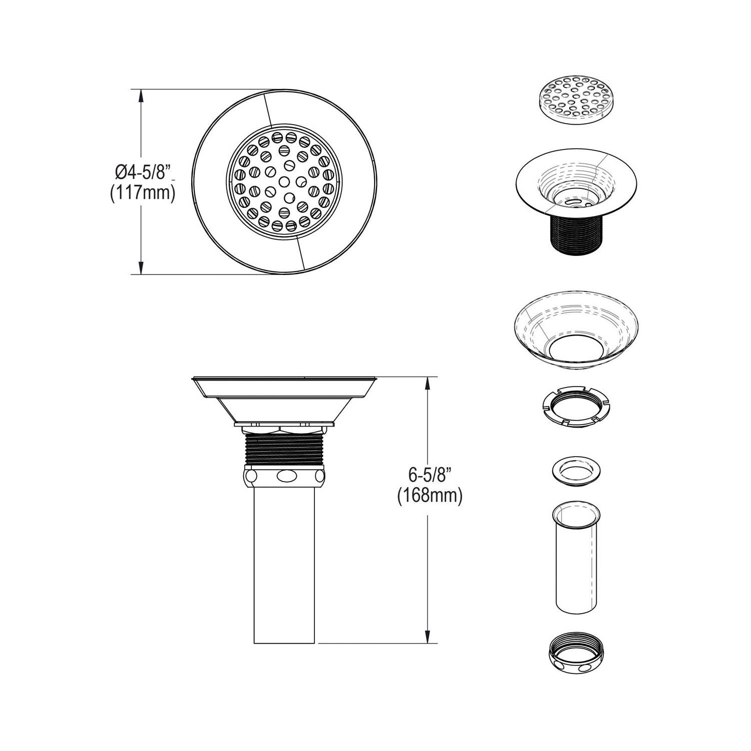 Elkay® Drain Fitting, 3-1/2 in Nominal, 304 Stainless Steel Drain, 3 in Grid, Overflow Yes/No: No, Includes Lift Rod: No, Polished Stainless Steel, 4-5/8 in L x 4-5/8 in W x 6-5/8 in H Dimensions, Import