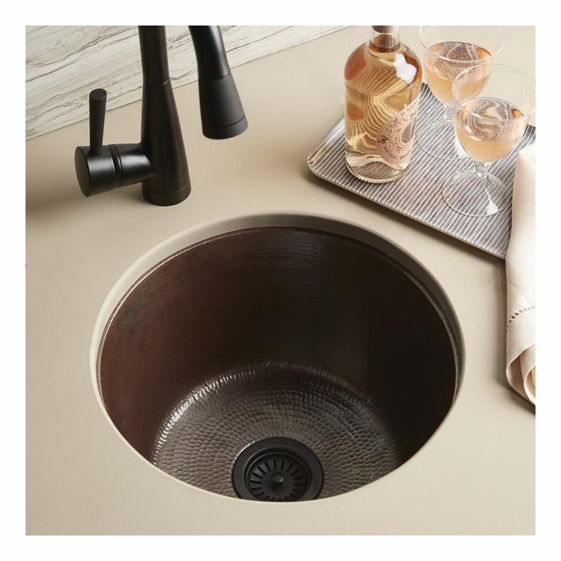 Native Trails CPS251 Redondo Grande Bar and Prep Sink, Round Shape, 17-3/4 in OD x 9-1/2 in H, Undermount Mounting, Antique Copper, Import