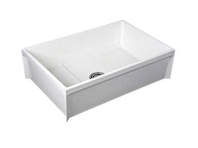 FIAT® Mop Service Basin, Squared Shape, 36 x 24 in Bowl, 1 Basin, 36-3/16 in W x 24-3/16 in D x 10 in H Overall, Molded Stone, White